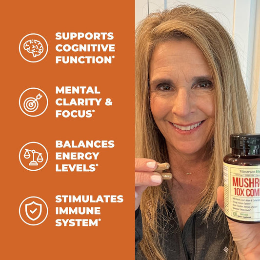 Vimerson Health Mushroom Complex Supplement - Lion’s Mane, Reishi, Cordyceps, Chaga, Turkey Tail & More. Memory, Focus, Immune Support, Energy. 60 Capsules.