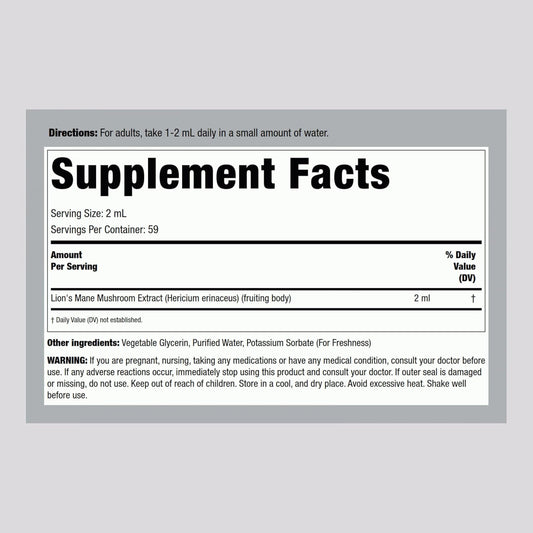 Lions Mane Mushroom Liquid Extract - 4 Fl Oz | Alcohol-Free, Vegetarian | Non-GMO, Gluten-Free Tincture by Piping Rock