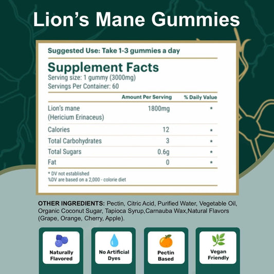 Belmonia Lion's Mane Mushroom Gummies - 5400mg per Serving - Cognitive Focus Memory Supplement - 60 Count - Made in USA - Superfood Supplement