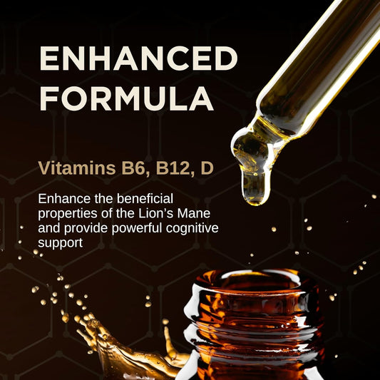 Lion’s Mane Mushroom Tincture for Cognitive Function - Liquid Supplement with B12, B6, D Vitamins - Memory, Focus, Concentration - Vegan Drops (4 Fl Oz)