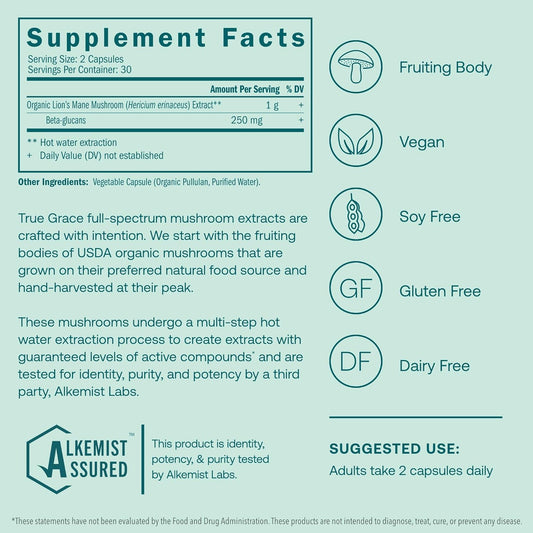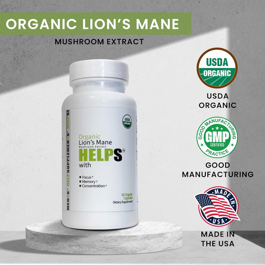 Organic Lion's Mane Mushroom Capsules for Cognitive Support - 60 Count