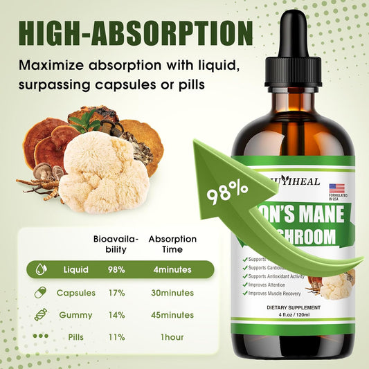 JUYIHEAL Lions Mane Liquid Tincture - Brain Support Supplement for Energy, Memory, and Focus - Sugar & Alcohol-Free - 4 Fl OZ, 4 Month Supply