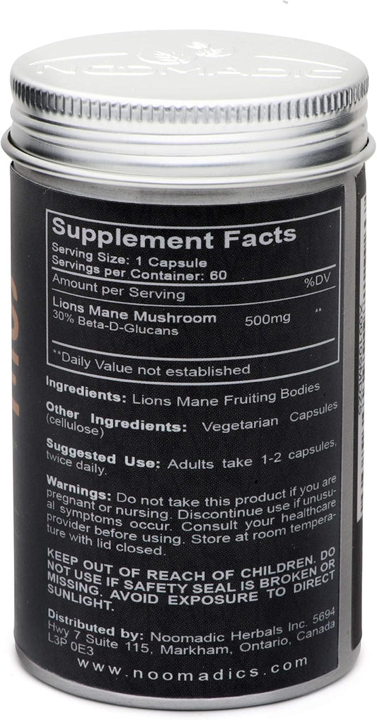 Organic Lion's Mane Mushroom Capsules - 60 Count, 500mg, NGF & Nootropic Support, Hot Water Extract, Wood Grown, 30% Beta-D-Glucans