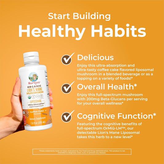 Organic Lions Mane Mushroom Supplement with Ultra Absorption Liposomal Technology - 200mg Beta-Glucans - USDA Organic - Vegan - 7.6 oz - 15 Servings