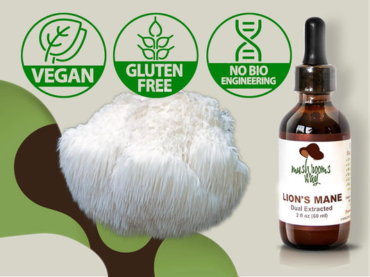 Lions Mane Mushroom Supplement for Memory, Focus & Clarity - Dual Extract for Brain, Gut & Immune Health - Non-GMO & Vegan - 2 Fl Oz