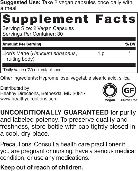 Physician-Recommended Lion's Mane Mushroom Supplement - 1,000 mg per Serving, 60 Vegan Capsules for Brain Health and Wellness. (30-Day Supply)