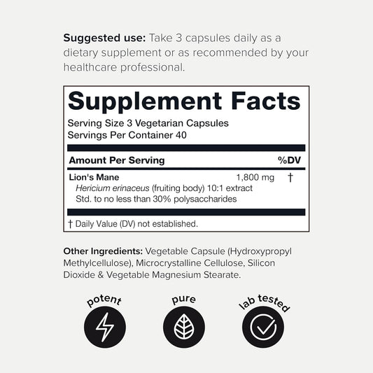 Toniiq Lion’s Mane 10:1 Extract Capsules - Ultra High Potency with 30% Polysaccharides - Bioactive Formula - 120 Count