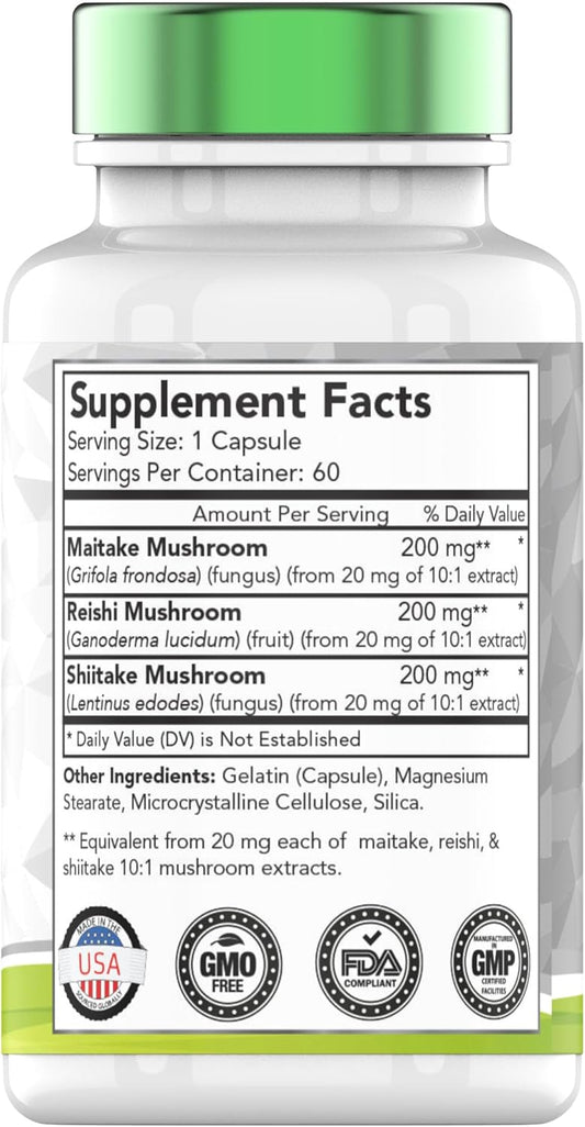 Immune System Support Supplement with Reishi, Maitake, & Shiitake Mushrooms | 60 Capsules x 600 MG | Mushroom Defense Powder Extract