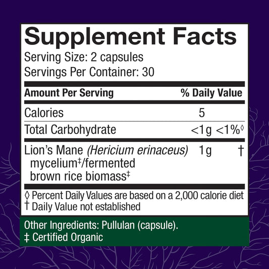 Lion's Mane Mushroom Supplement for Brain Health, Focus, and Memory - Immune and Nervous System Support - 60 Capsules