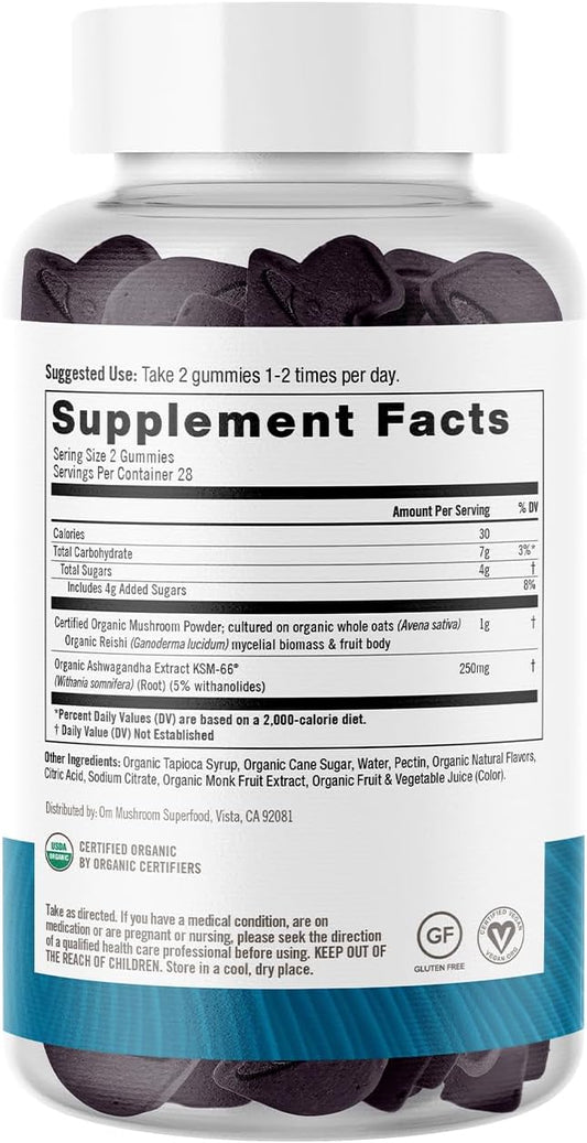 OM Mushroom Superfood Relax Gummies - Reishi & Ashwaganda Extract, Blueberry Supplements for Stress Relief Support, 28 Servings