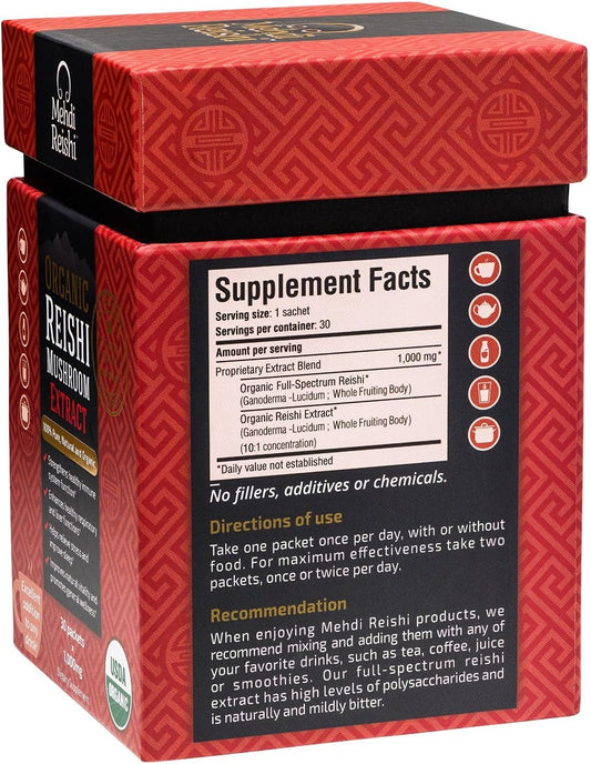 Premium Organic Reishi Mushroom Fruiting Body Extract Powder with 35% Beta Glucan - 100% Pure, 30 Servings, Ganoderma Lucidum