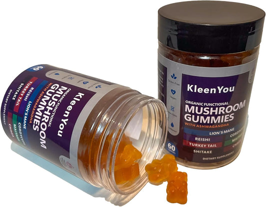 Organic Lion's Mane & Ashwagandha Gummies with Reishi & Cordyceps - Vegan Mushroom Supplement for Cognitive & Immune Support - 60 Low Carb Gummies