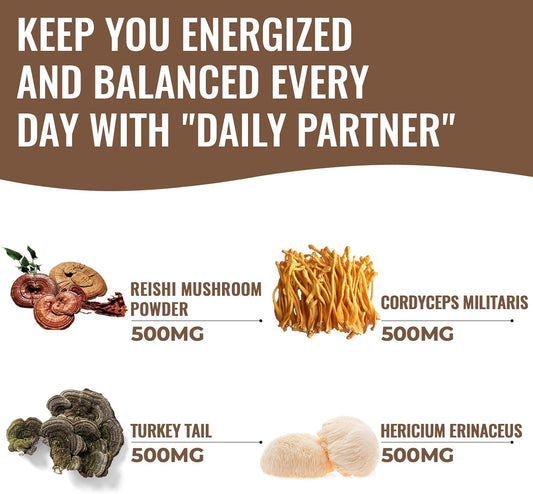 2600mg Mushroom Supplement with Lions Mane, Cordyceps, Reishi, Turkey Tail, Chaga - Memory, Focus, Mood, Immunity - 120 Capsules
