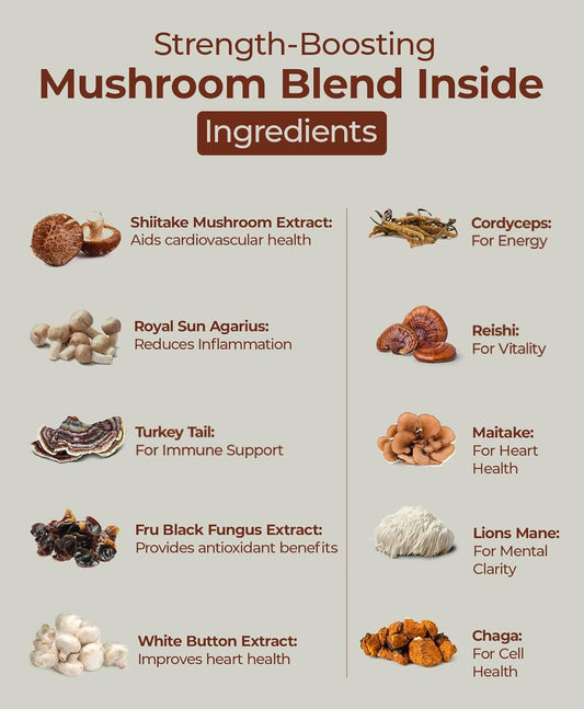 Premium 10-in-1 Mushroom Complex Capsules for Immune & Cognitive Health - 60 Vegan Caps | Boost Energy, Memory & Focus with Lion's Mane, Cordyceps, Reishi & Chaga | Non-GMO