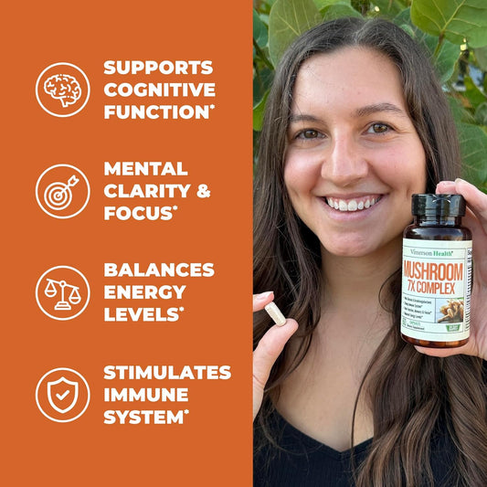 Organic Mushroom Supplement Capsules with 8 Herbal Roots | Turkey Tail, Lion's Mane, Shiitake, Cordyceps, Reishi, Chaga, Maitake, Snow | 60 Vegan Capsules