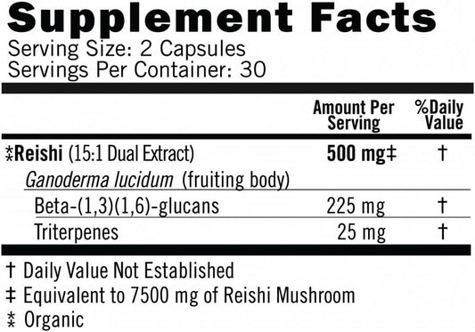 Organic Reishi Mushroom Capsules - 100% Fruiting Body Extract for Immune Support - Vegan & Concentrated - 60 Capsules