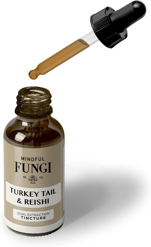 Vegan Turkey Tail and Reishi Mushroom Liquid Supplement for Immune and Digestive Support, 2 Fl Oz