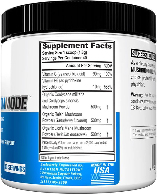 Organic Mushroom Supplement Powder with Lions Mane, Cordyceps, and Reishi - Brain Support Nootropic for Focus and Energy - Vegan - 40 Servings