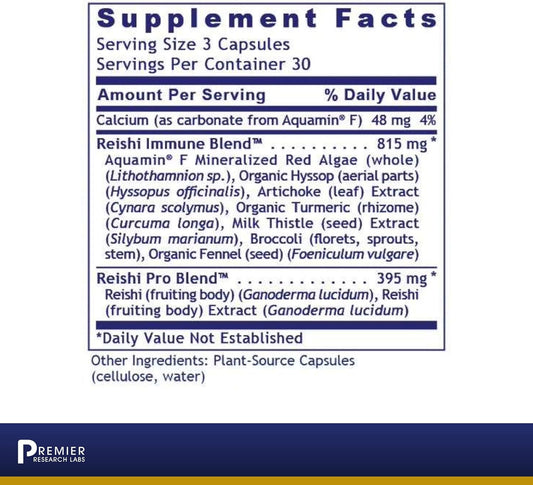 Organic Reishi Mushroom Capsules with Red Algae, Turmeric, and Milk Thistle - 90 Vegan Capsules for Immune Support