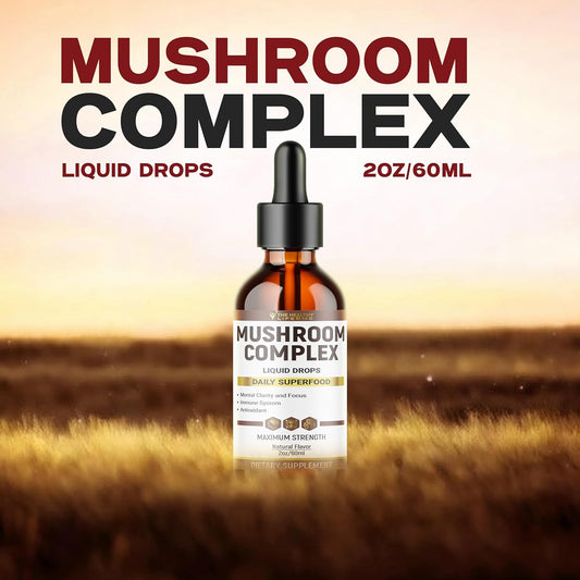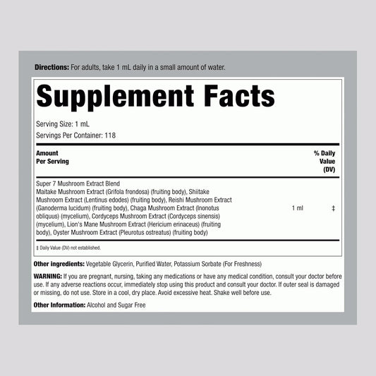 7-in-1 Mushroom Complex Liquid Drops - 4 Fl Oz - Vegetarian Tincture with Maitake, Shiitake, Reishi, Chaga, Cordyceps, Lion's Mane & Oyster Mushrooms - Non-GMO, Gluten Free