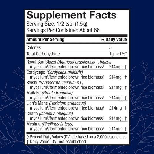 7-Species Mushroom Supplement for Immune Support - Stamets 7 Mushroom Powder with Royal Sun Blazei, Cordyceps, Reishi, Maitake, Lion's Mane, Chaga, Mesima - 3.5 oz