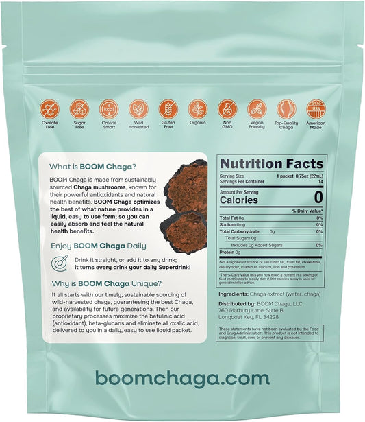 Chaga Mushroom Superdrink Liquid Concentrate, Antioxidants for Inflammation and Immunity, Beta-Glucans for Heart Health, 14 Packets