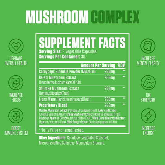 EPN Supplements Mushroom Complex 10x Power | Top-Rated Immune System Boosting Supplement with Cordyceps, Reishi, Shiitake, Lions Mane | Supports Mental Clarity & Overall Health