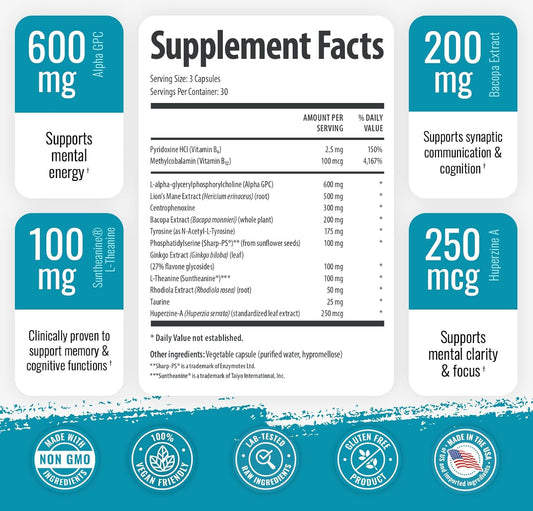 Body Brain Support Triple Pack - Alpha GPC & Lion's Mane Extract - 90 Capsules per Bottle
