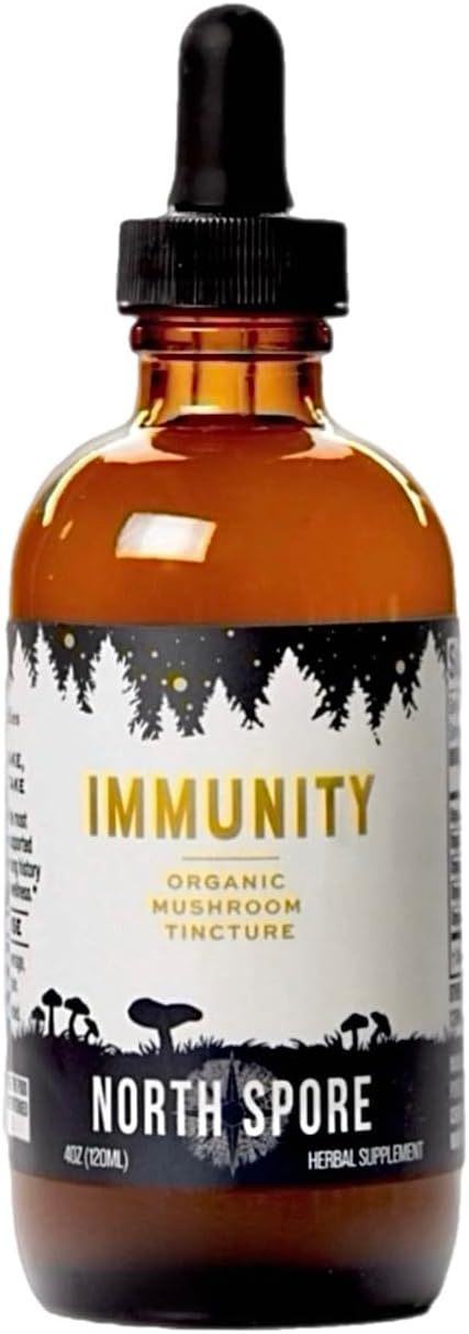 Certified Organic Immunity Mushroom Tincture | North Spore (4 oz) | Fruiting Body Extracts | Chaga, Turkey Tail, Reishi, Maitake, Shiitake | Vegan, Non-GMO, Made in USA