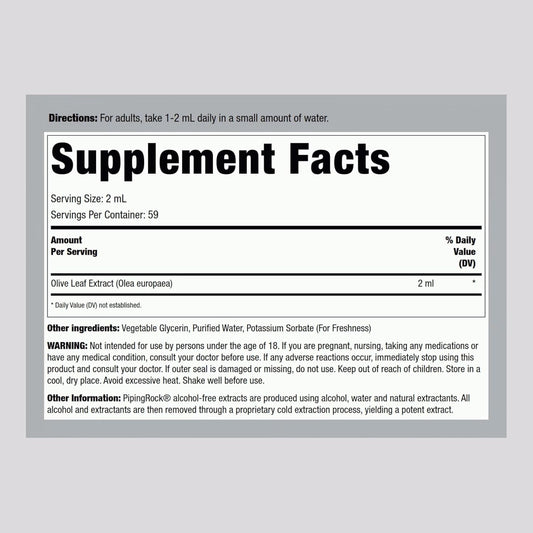 4 oz Piping Rock Olive Leaf Extract Liquid Drops - Alcohol-Free Tincture, Vegetarian, Non-GMO, Gluten-Free
