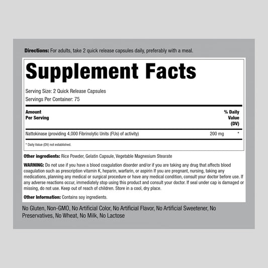 4000 FU Nattokinase Supplement - 200mg - 150 Capsules - Non-GMO & Gluten Free by Piping Rock