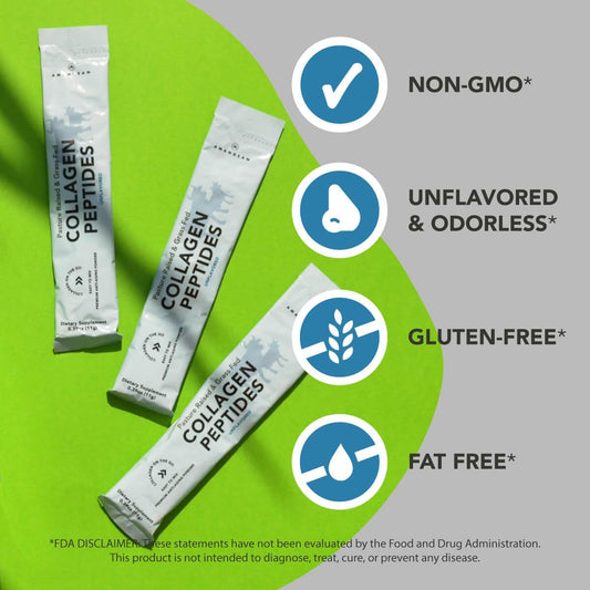 30 Grass-Fed Collagen Peptides Stick Packs for Healthy Gut, Skin, Hair, Nails | Easy Mix Travel-Friendly Protein Powder