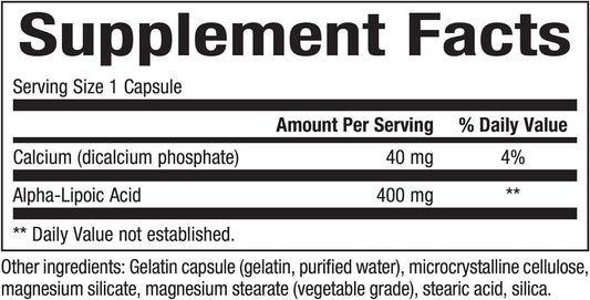 400mg Natural Factors Alpha-Lipoic Acid Capsules for Whole Body Antioxidant Support - 60 Count