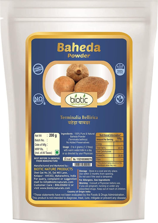 200g Veena Biotic Baheda Powder - Terminalia bellirica - Organic Bibhitaki Churna for Digestion Support