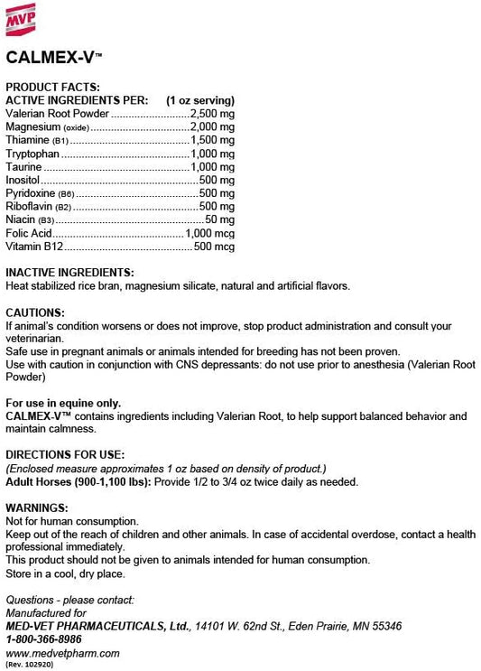 10lb Calmex-V MVP Calming Support Supplement for Horses - Natural Stress Relief Formula