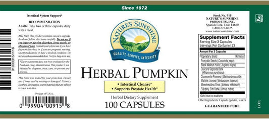 100 Capsules of Nature's Sunshine Herbal Pumpkin Supplement for Natural Health Support
