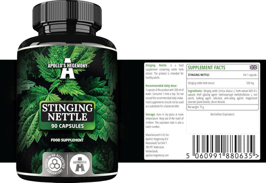 High Strength Stinging Nettle Extract Capsules - 500mg, 90 Vegan Capsules, Cardiovascular Support, Herbal Supplement