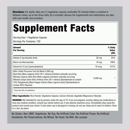 Beetfit Pro Nitric Oxide Beet Root Capsules with Nitrates - 120 Count, Vegetarian, Non-GMO, Gluten Free Supplement