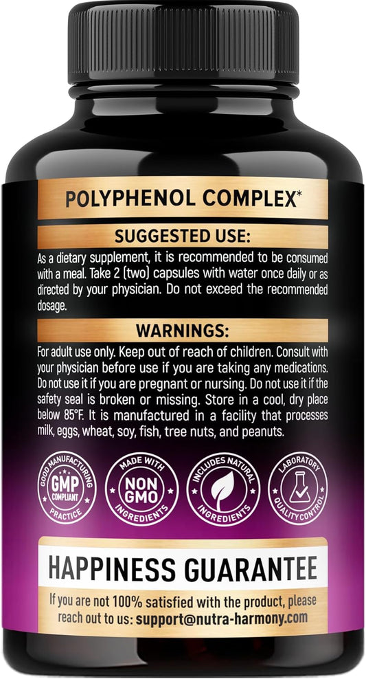 JB Wellness Co Polyphenol Supplement with Resveratrol, Grape Seed Extract, Noni, N-Acetyl Cysteine, Acai - 60 Capsules for Women and Men