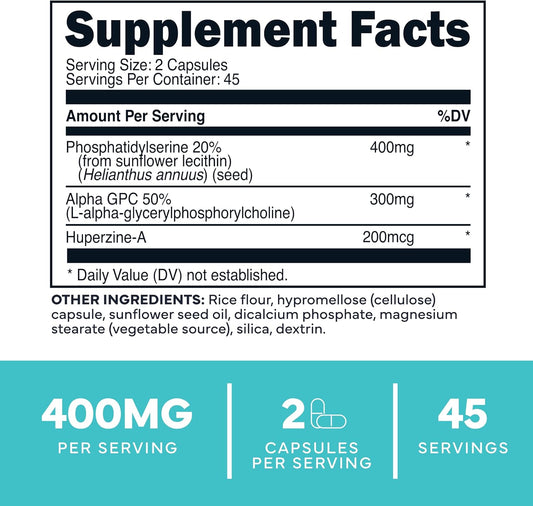 3X Strength Phosphatidylserine Nootropic Supplement with Alpha GPC and Huperzine A for Clean Focus and Memory Support