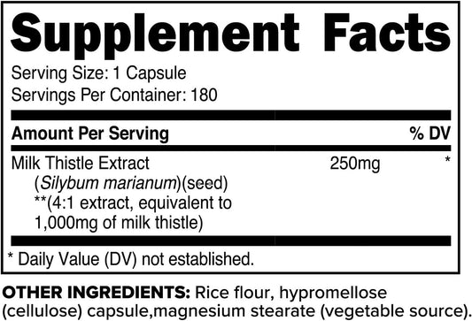 180 Capsules Primaforce Milk Thistle Supplement - 1000mg Equivalent, Gluten Free, Non-GMO, 4:1 Extract