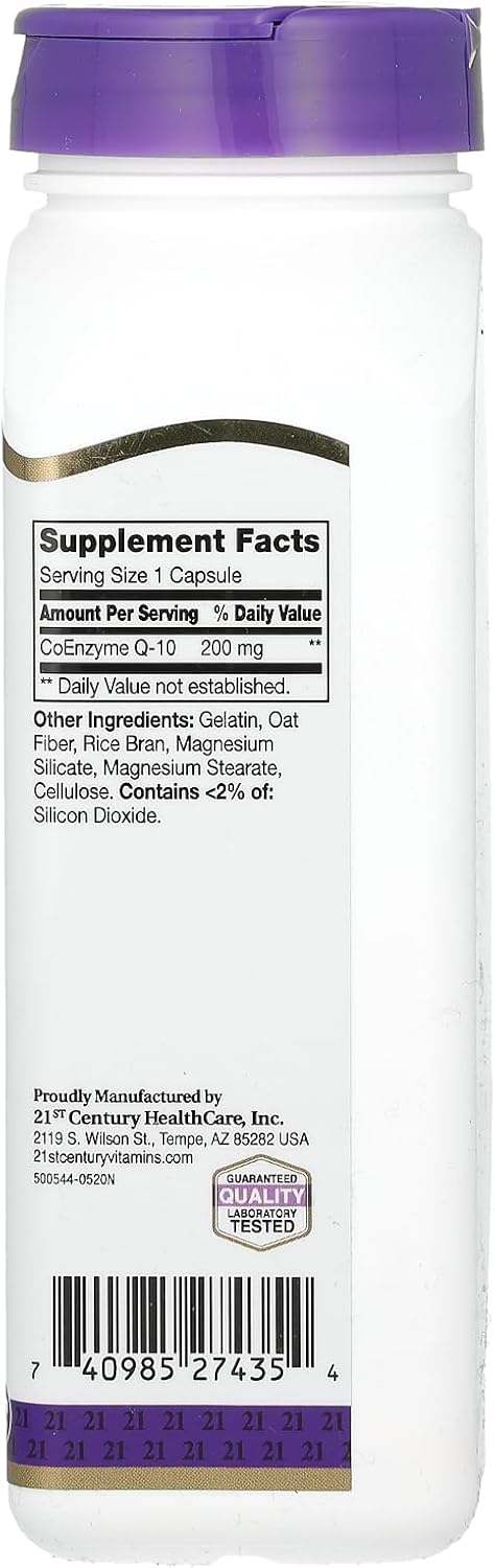 120 Count 21st Century Co Q10 200 mg Capsules - High Quality Supplement for Heart Health and Energy Boost