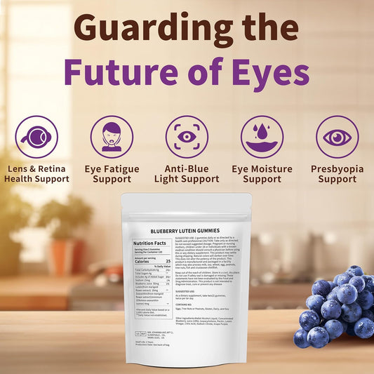 120 Count Blueberry Lutein Gummies for Eye Health Support - 2 Month Supply for Kids & Adults - Blueberry Juice and Lutein Supplement