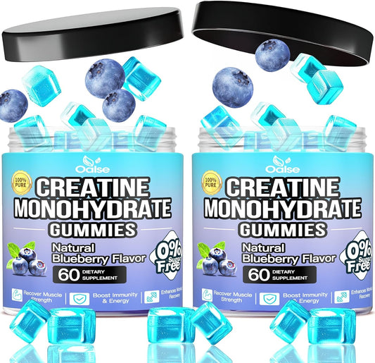 120 Count Creatine Monohydrate Gummies for Muscle Support & Energy Boost - Vegan, Sugar Free, Blueberry Flavor, 2 Pack