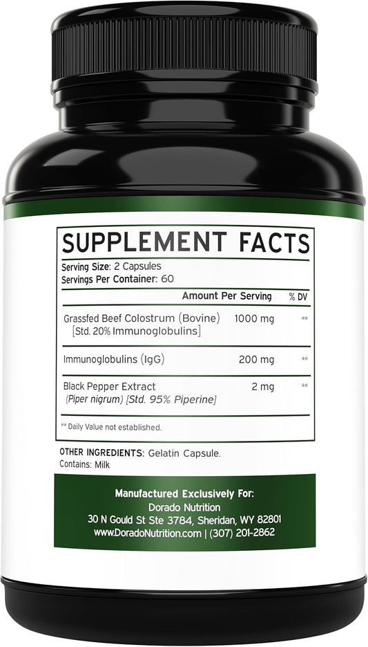 120 Count Dorado Nutrition Bovine Colostrum Capsules (1000mg) - 20% IgG Immunoglobulins, Grass Fed, No Fillers, USA Made