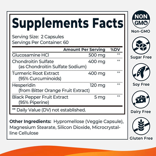 120 Capsules Joint Support Supplement with Turmeric Curcumin, Glucosamine, and Chondroitin - Pain Relief and Mobility Support
