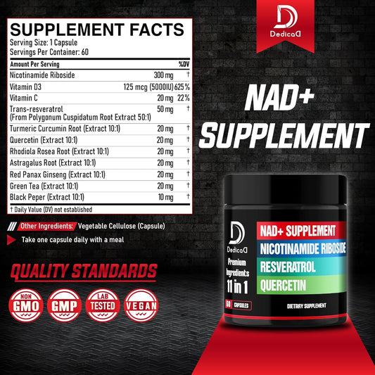 11in1 NAD+ Supplement with Liposomal NR, Quercetin, Resveratrol - Cellular Energy & Repair, Healthy Aging - 2 Month Supply