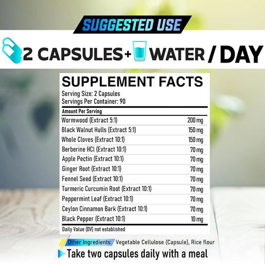 11in1 Wormwood Capsules - 180 Capsules for Digestive, Immune, and Joint Health - Black Walnut, Cloves, Ginger Extracts