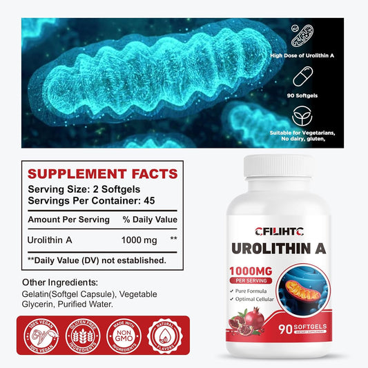 1000mg Urolithin A Supplement - 90 Softgels for Healthy Aging, Energy, Antioxidant Support & Mitochondrial Health
