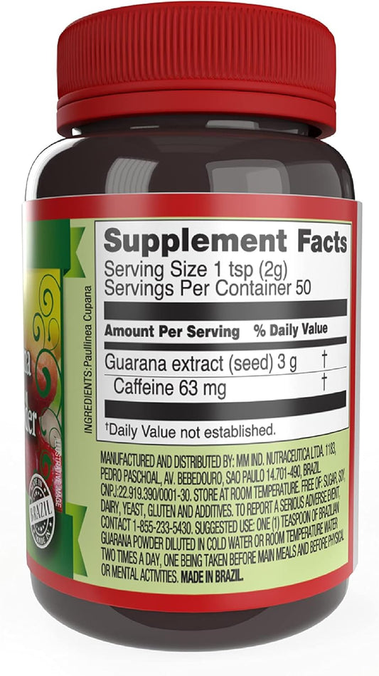 100g Beelife Brazilian Guarana Powder: Natural Caffeine Supplement for Energy, Focus, Muscle Strength - Gluten-Free Vegan Pre Workout